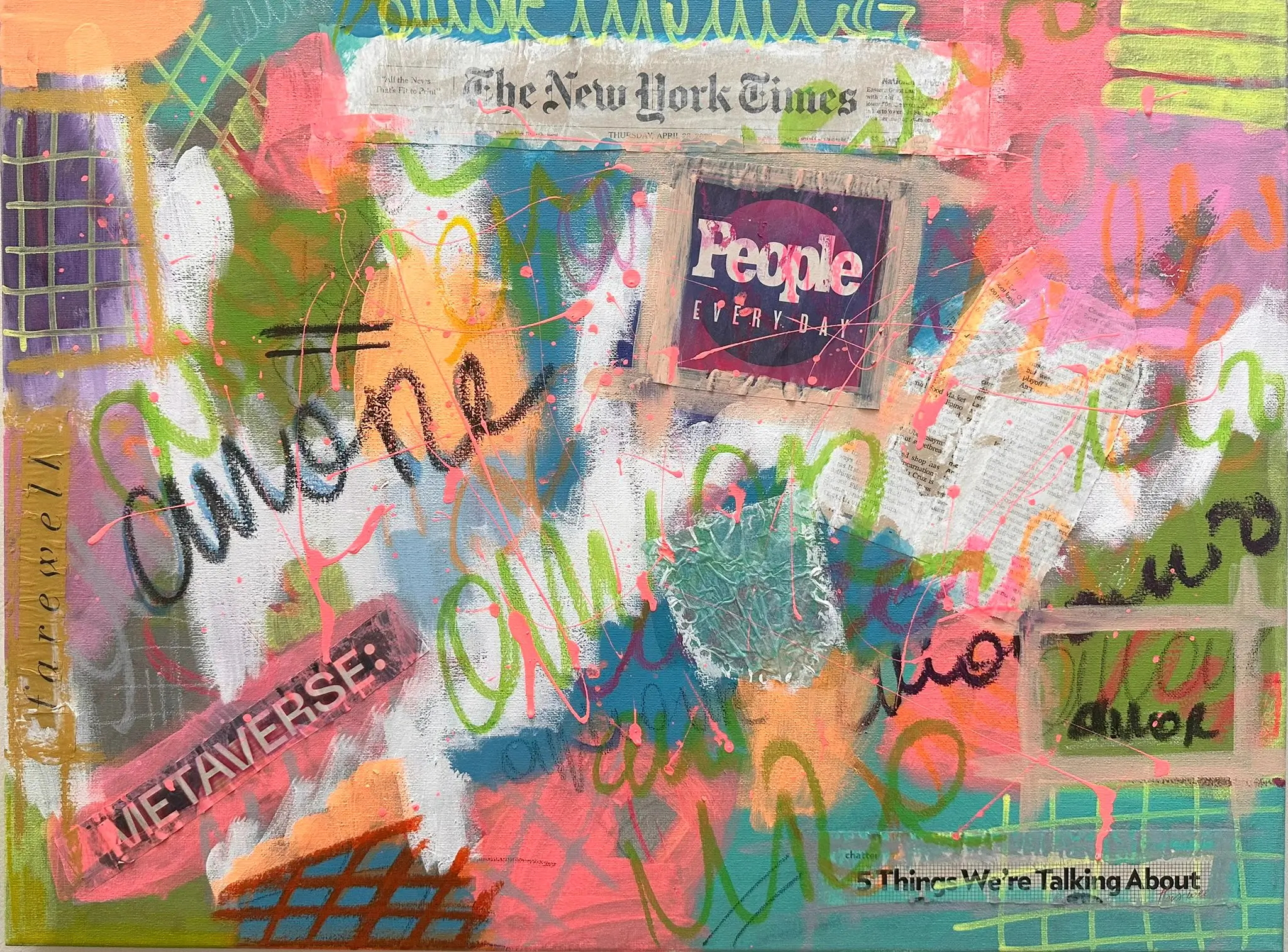 – Acrylic and mixed-media on canvas.